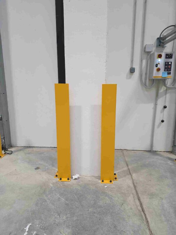 En los entornos logísticos y aparcamientos, las farolas y columnas estructurales son especialmente vulnerables a roces y golpes de vehículos, sobre todo en maniobras marcha atrás. Curmi fabrica carenados y defensas de acero, normalmente en color amarillo de alta visibilidad, que envuelven la base de estos elementos y absorben el impacto antes de que llegue al hormigón o al propio fuste metálico. Con ello se evitan reparaciones costosas, se alarga la vida útil de la estructura y se mejora la imagen del recinto, que mantiene sus pilares y luminarias en perfecto estado durante más tiempo.