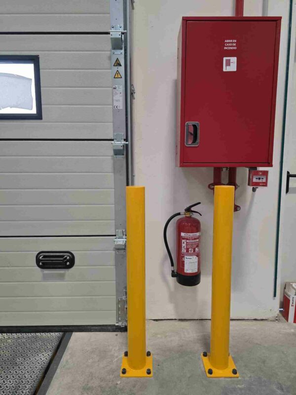Los bajantes y conducciones que discurren por fachadas y pilares, así como las propias puertas seccionales o portones industriales, suelen sufrir golpes repetidos que terminan en fugas, atascos o averías. Para estos casos Curmi diseña perfiles envolventes y defensas delanteras que se fijan al pavimento y actúan como un escudo frente a carretillas, transpaletas y carros de manutención. El resultado es una línea continua de protección que cuida tanto la integridad de las instalaciones como el cumplimiento de normativas de prevención de riesgos laborales y de mantenimiento de emergencias, por ejemplo al salvaguardar armarios contra incendios y extintores cercanos a las zonas de paso.